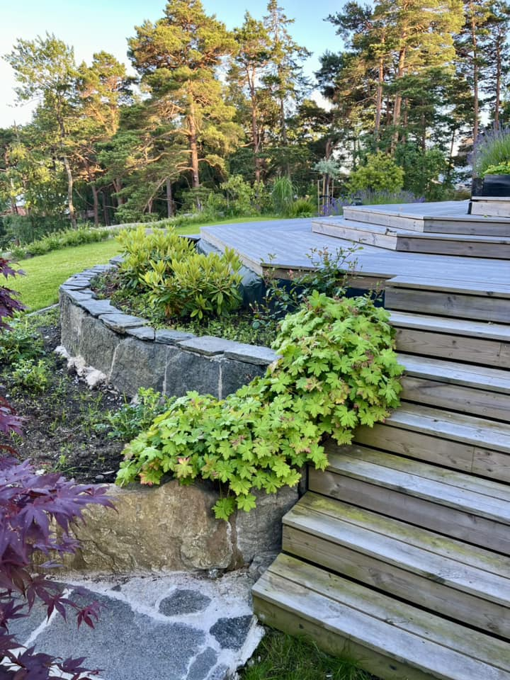 Blomlådan kan antingen utgöra hela kanten eller kombineras med trapp - se exempel nedan.