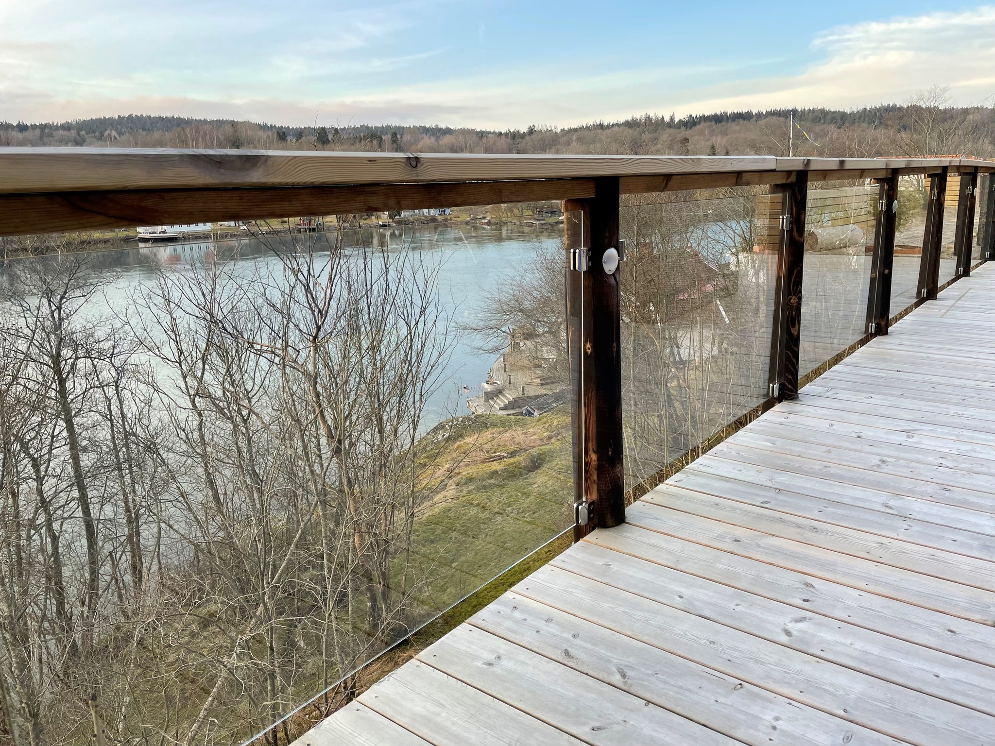Glasräcken erbjuder en maximal utsikt och släpper igenom ljus, vilket gör dem särskilt lämpliga för altaner med vacker utsikt eller som är belägna vid vattnet. Glas är också ett robust och hållbart material som kräver minimalt underhåll. Designen är flexibel, vilket innebär att man kan anpassa utseendet efter specifika behov och stilpreferenser, från helt transparenta skivor till frostat glas för extra integritet. Oavsett designval ger glasräcken ett sofistikerat tillskott till både nya och befintliga altaner.