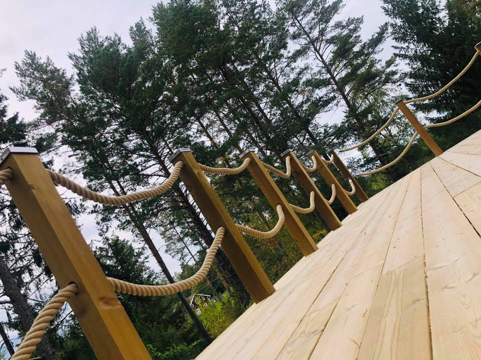 Ett räcke av rep ger altanen en unik och avslappnad känsla, perfekt för kustnära eller naturnära miljöer. Detta staket består av rep som löper genom trästolpar, ibland kompletterat med en överliggare för extra stabilitet och komfort. Repen kan vara löst eller stramt spända, beroende på den önskade estetiken och funktionen.