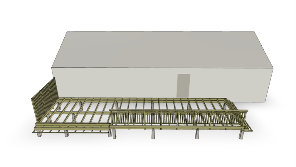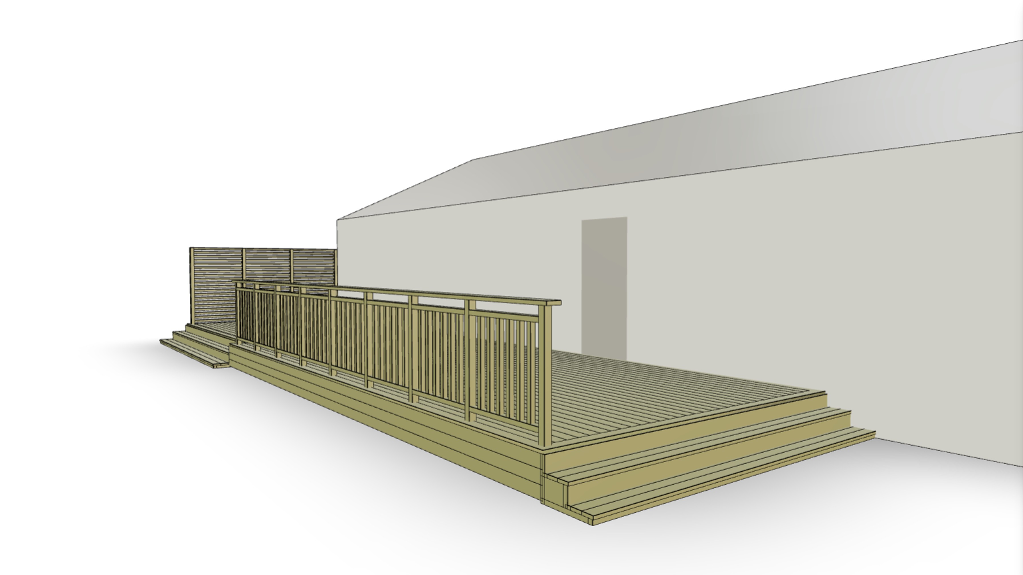Med Altanplaneraren Pro ritade Niklas upp sin altan i 3D och testade olika lösningar innan byggstart. Resultatet blev en lång altan med trappa, räcke och ett insynsskydd i ena änden.